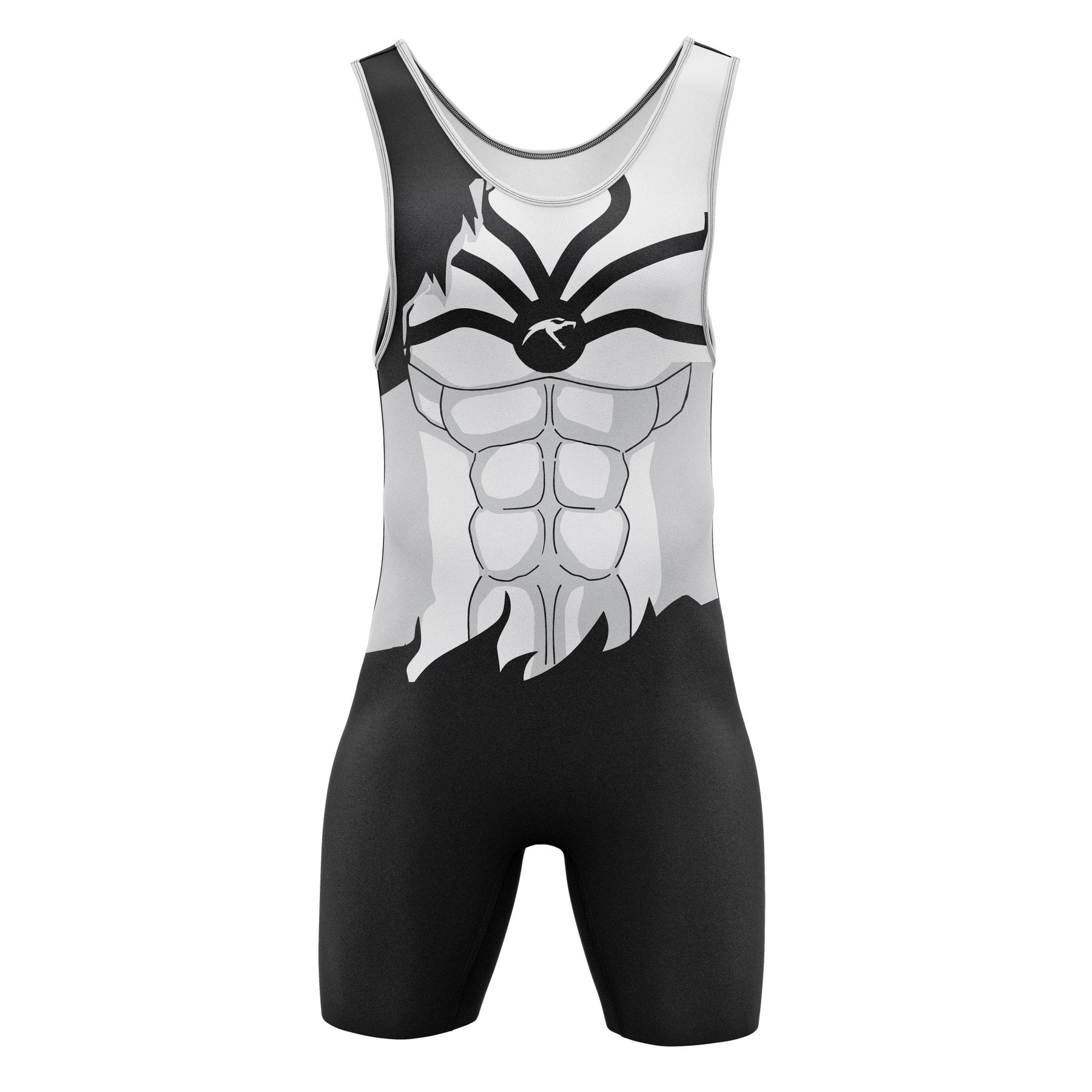 The Hollow Roll Premium Wrestling Singlet showcases a bold black and white 8-pack muscle design for a powerful look on the mat. Made with durable, flexible fabric, it ensures comfort, mobility, and standout style for men, women, and youth in top-tier wrestling gear.