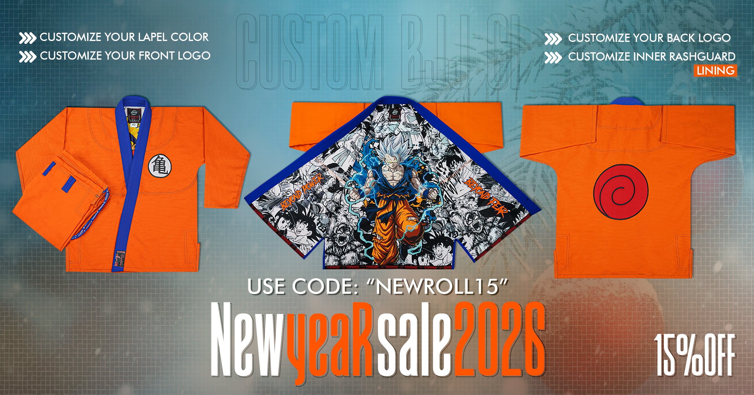 Design your own gi with full customization—stitching, lapel, jacket, pants, and logos. See a live preview as you build it, and even choose custom sizing made just for you.