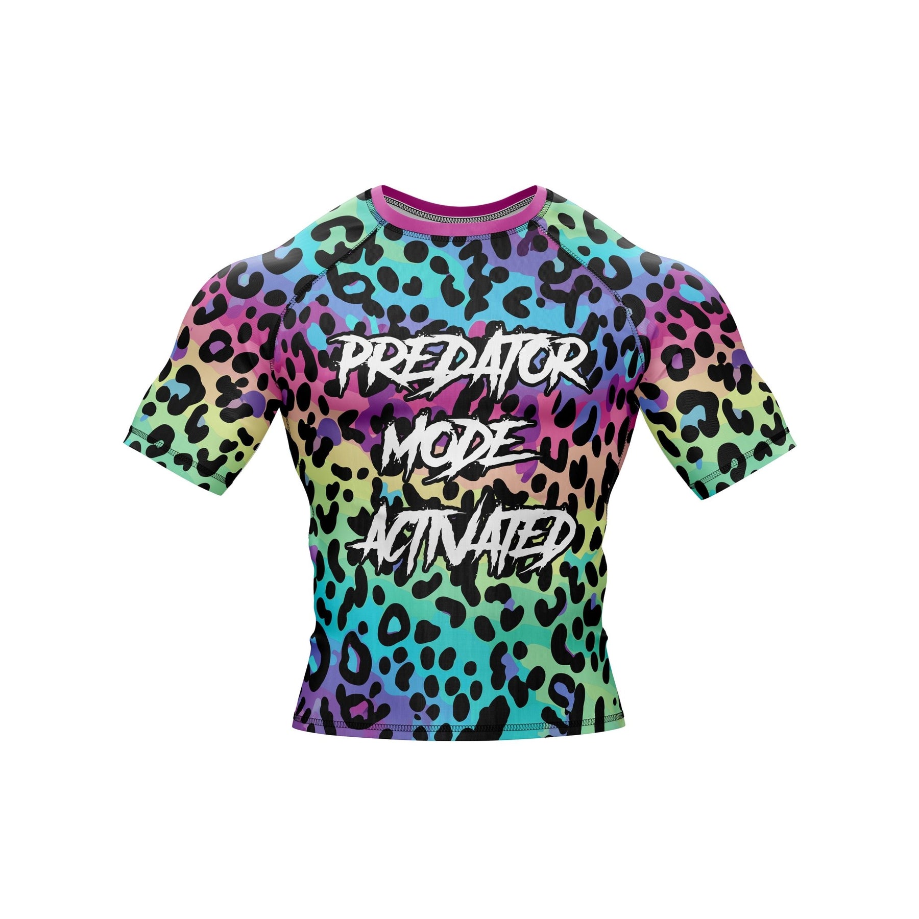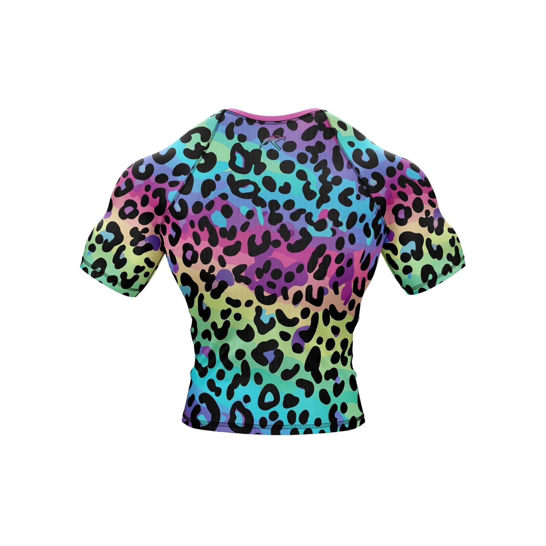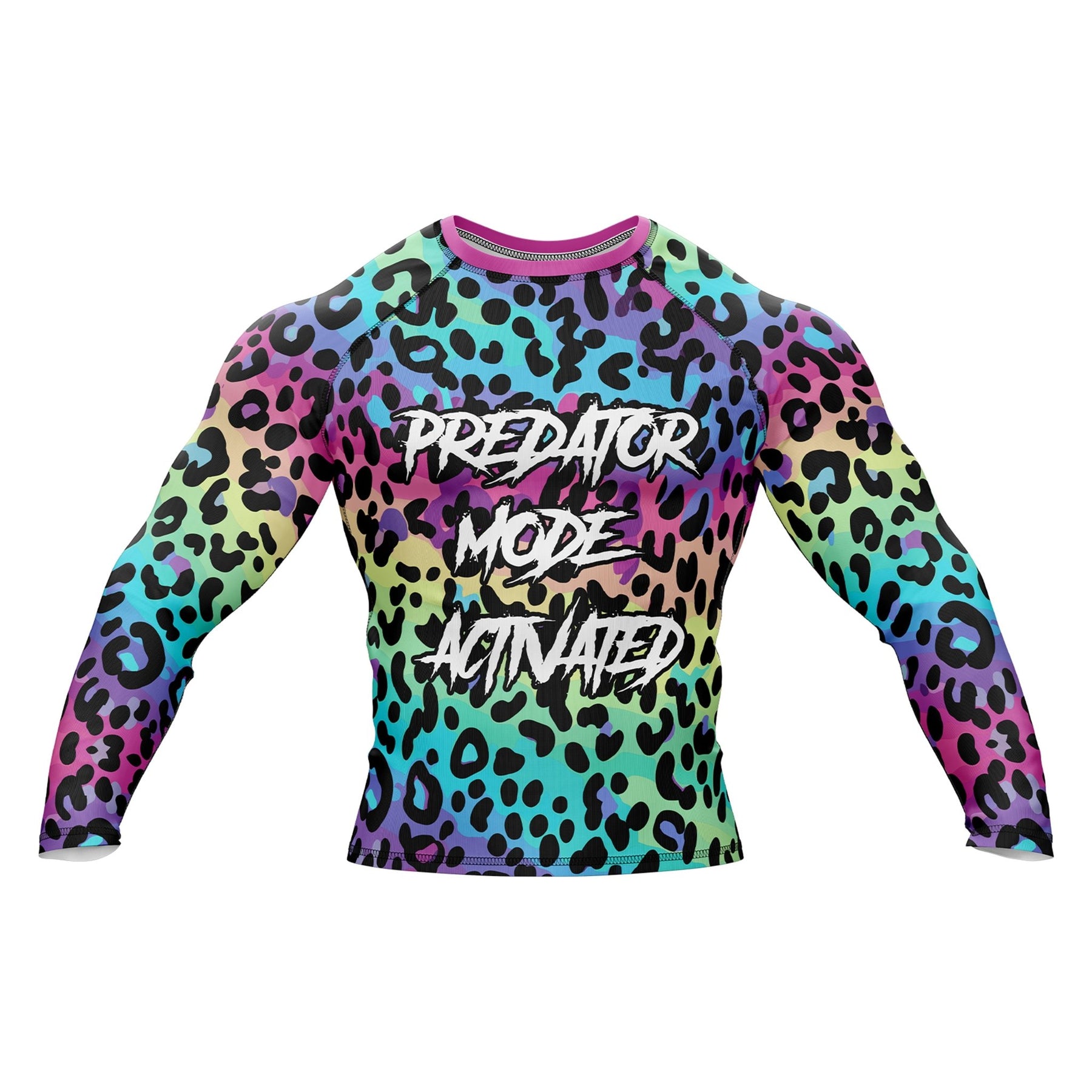 Roll with confidence in the Apex Guard Premium Bjj Rash Guard For Men/Women. Crafted for stylish athletes, it offers durable 4-way stretch, moisture-wicking comfort, and a sleek leopard skin inspired design in rainbow colors that keeps you cool and protected.